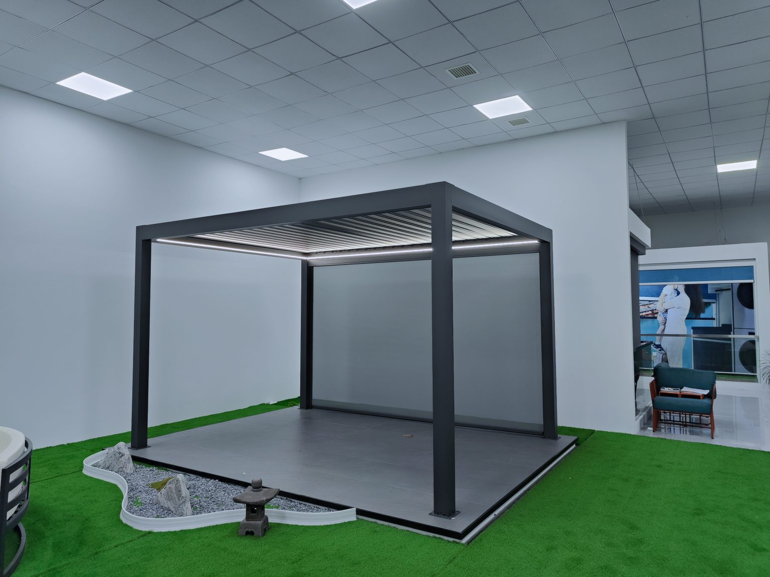 If you are considering motorized or smart pergolas (for example, adjustable louver systems or motorized canopies), the motor system is a critical component. Understand the motor’s brand, ingress protection rating (IP rating of at least IP44 is recommended), warranty period, and performance. Test the mechanism on-site, checking for smooth operation, noise level (a recommended maximum noise of ≤55 dB when stopping), and reliability of smart features such as app control and wind/rain sensors.