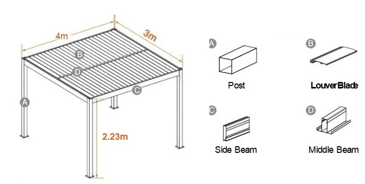 Aluminum Pergolas 100A-4R Parameters