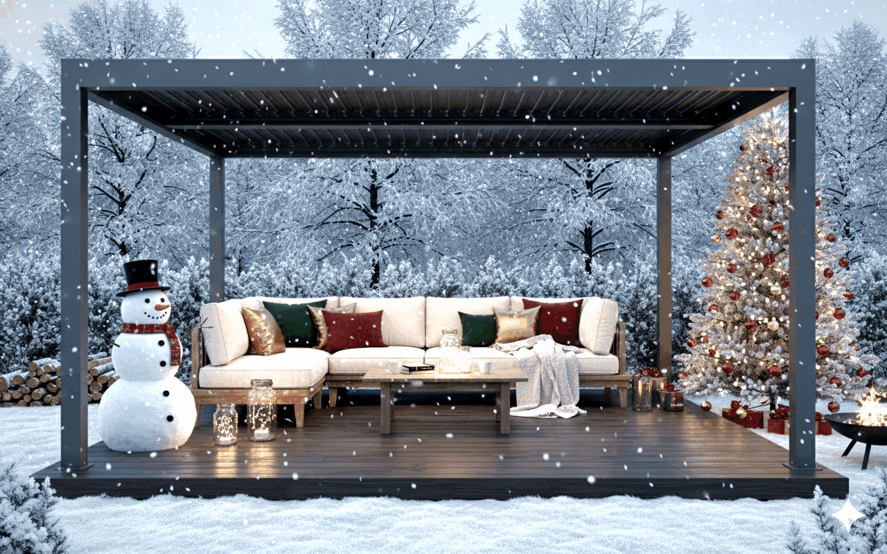 Decorating your pergola for Christmas is all about leaning into its open-air vibe to whip up a cozy